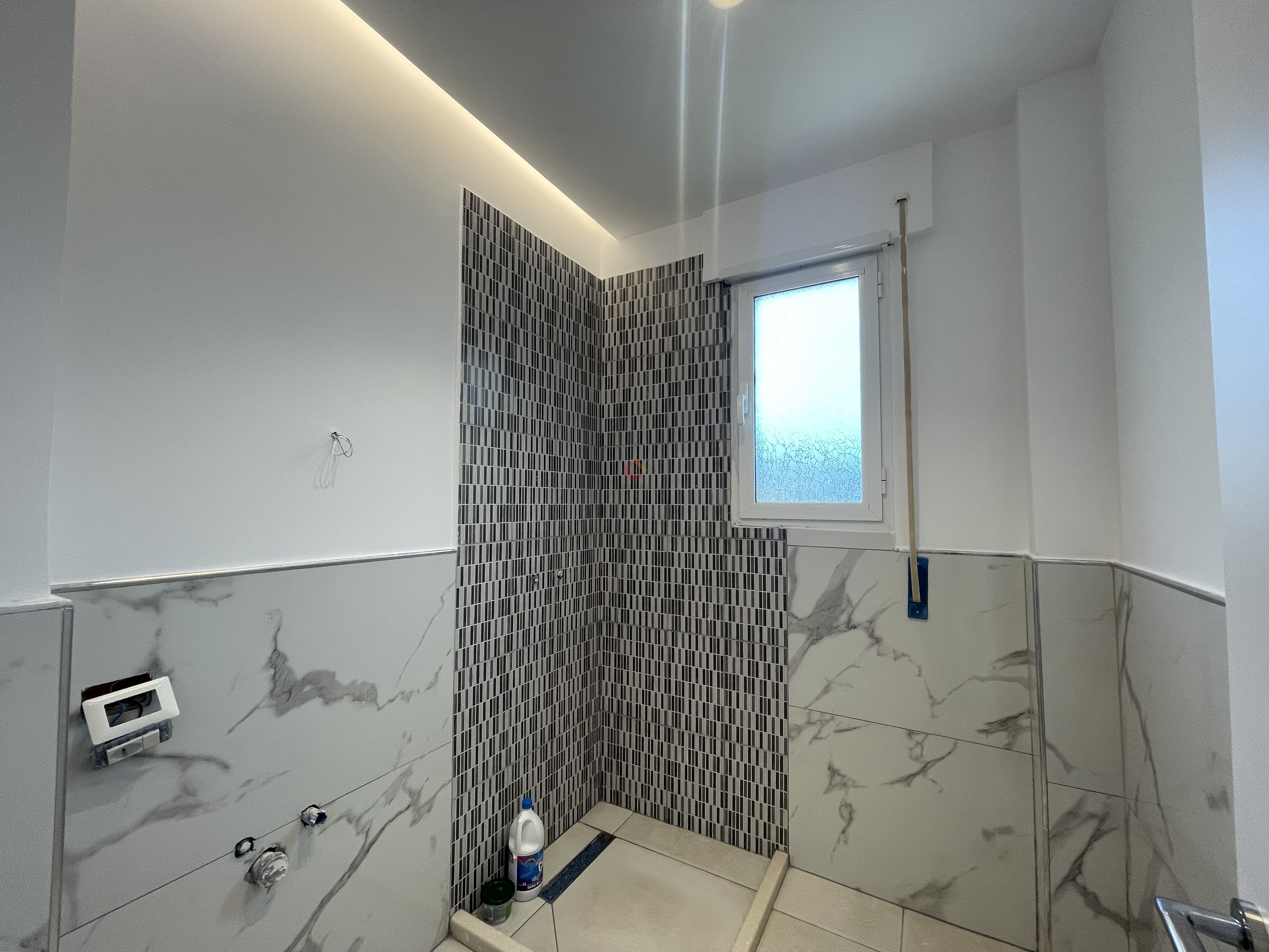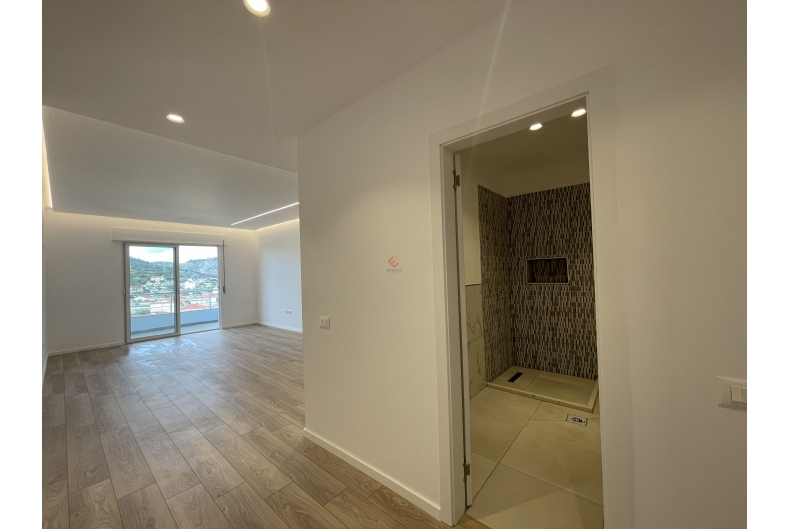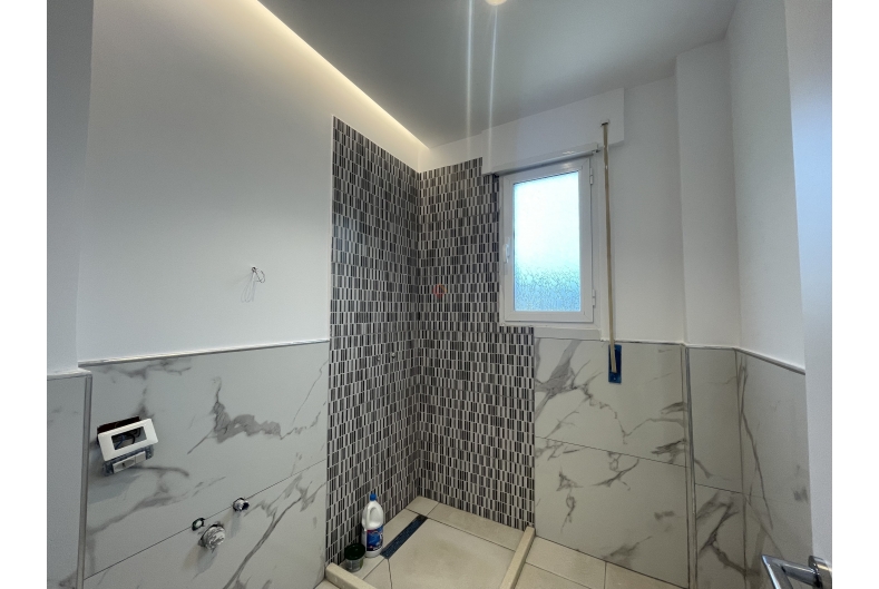 The apartment has undergone a complete renovation, including gypsum ceilings, new parquet flooring, new interior doors, and fully updated hydraulic and electrical systems.