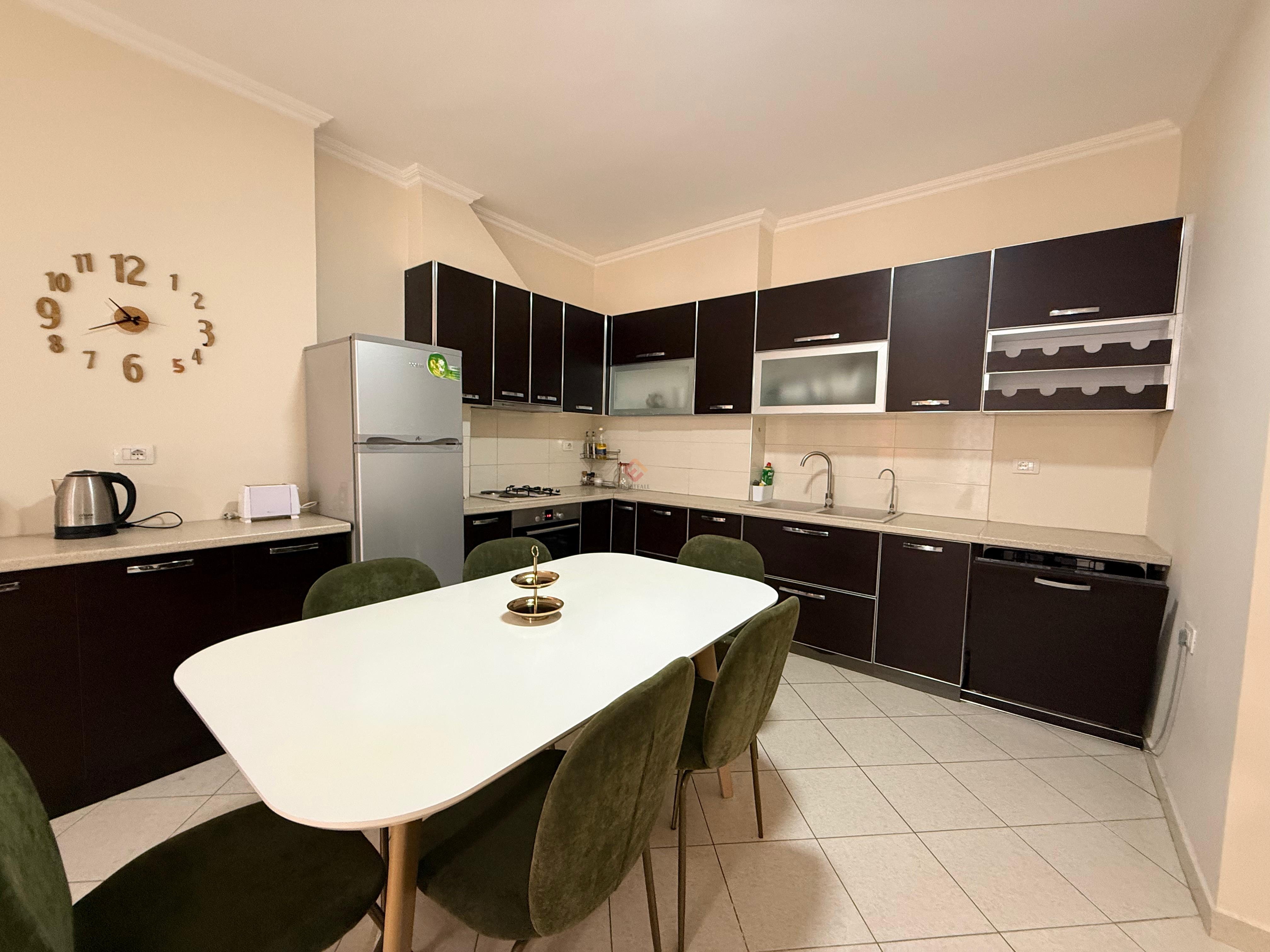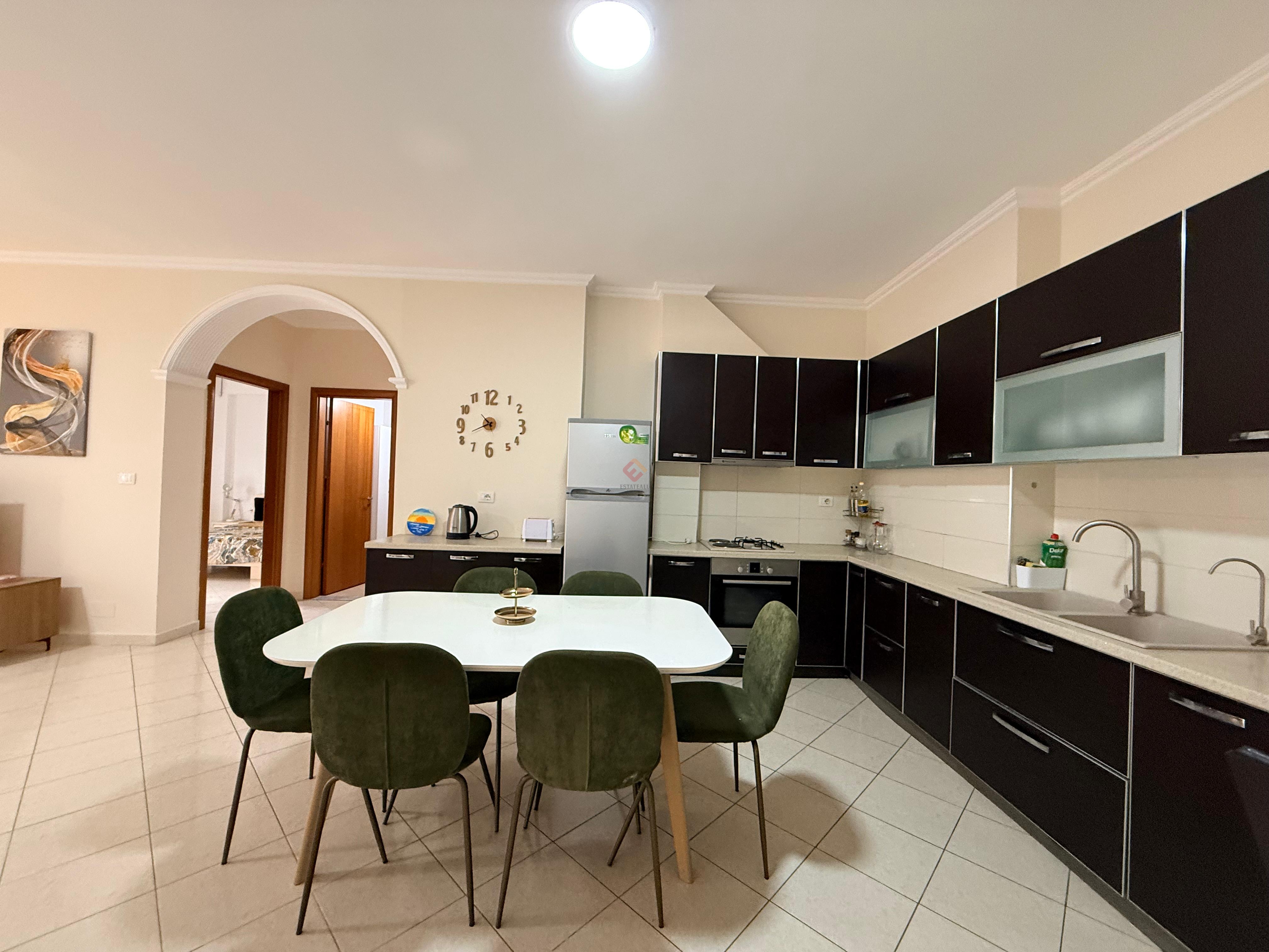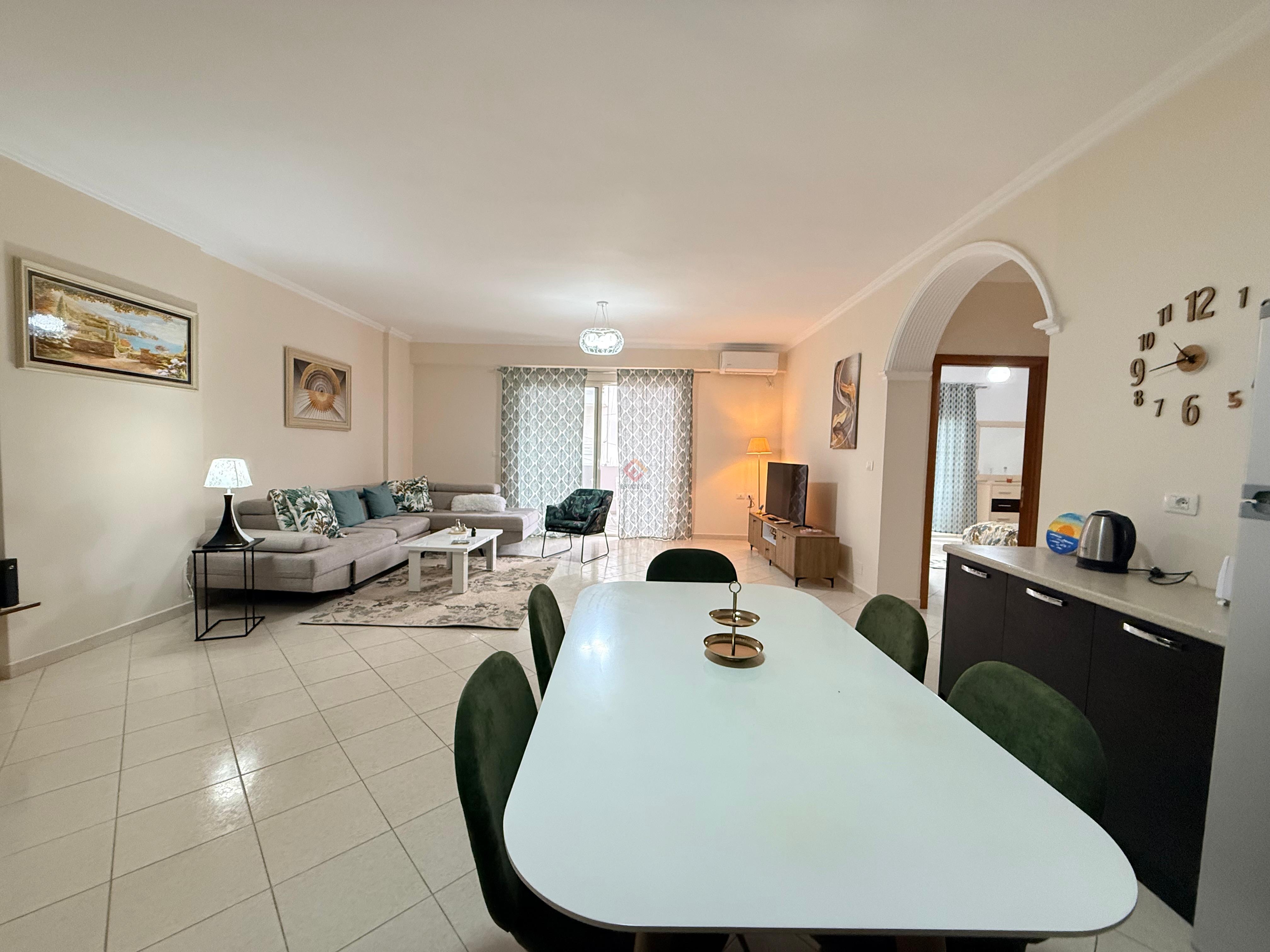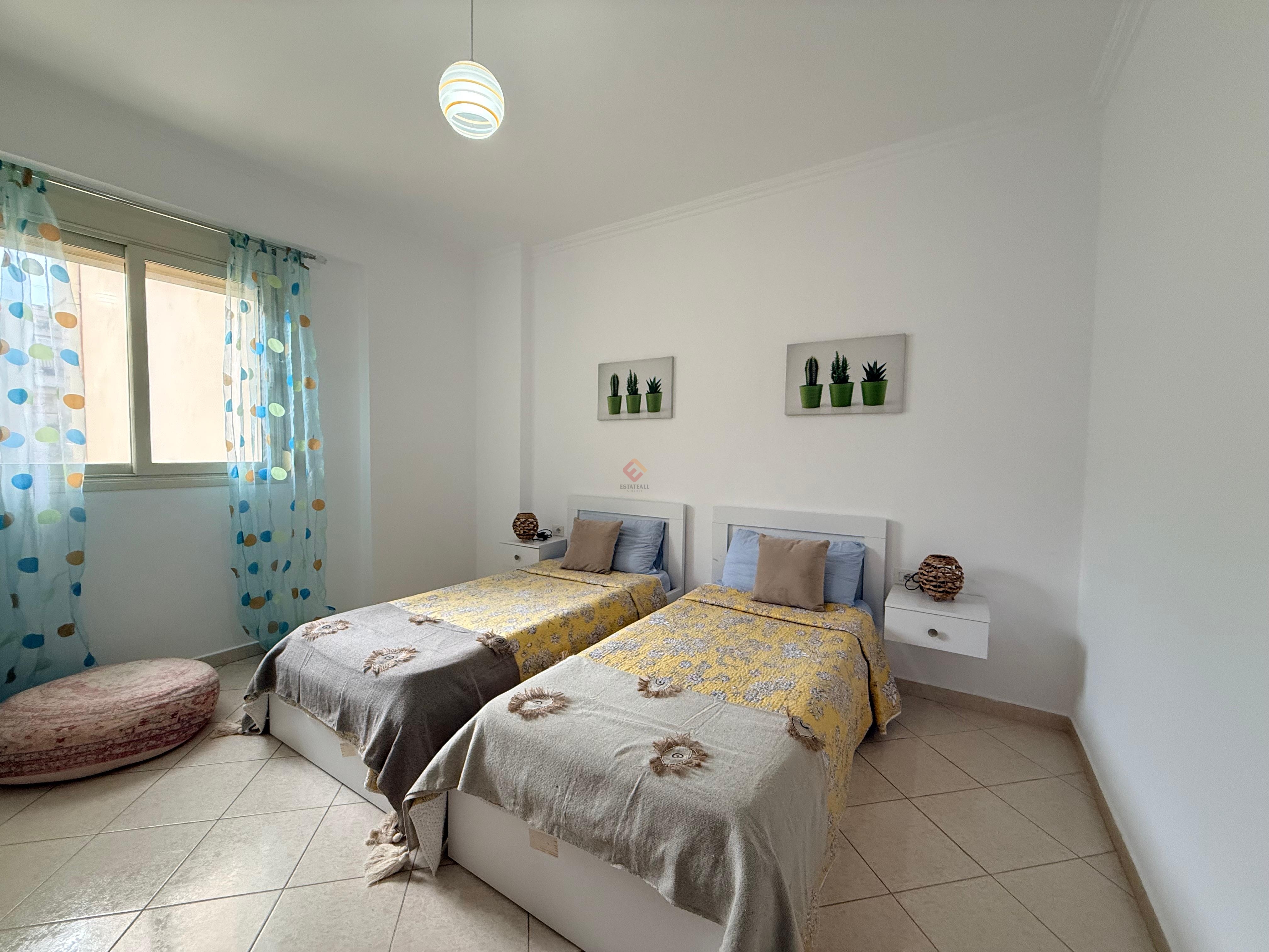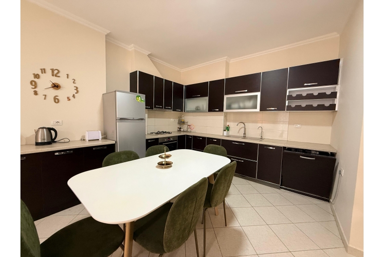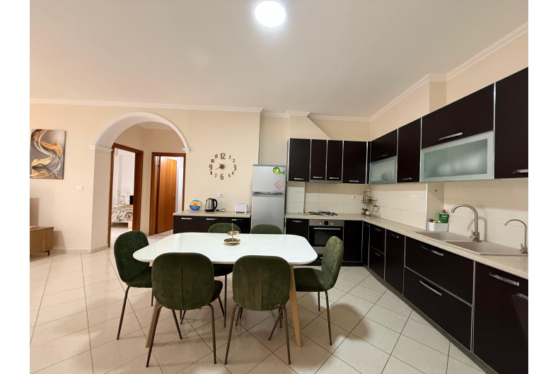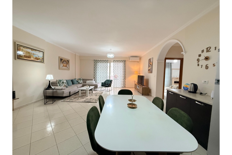 This well-furnished two-bedroom apartment is available for rent in a prime location, just a short walk from the main boulevard. The apartment offers a bright and comfortable living area, a modern kitchen, two cozy bedrooms, and a stylish bathroom. Finished with quality furniture and thoughtful details, it is ideal for comfortable city living with shops, cafes, and all essential services right nearby.