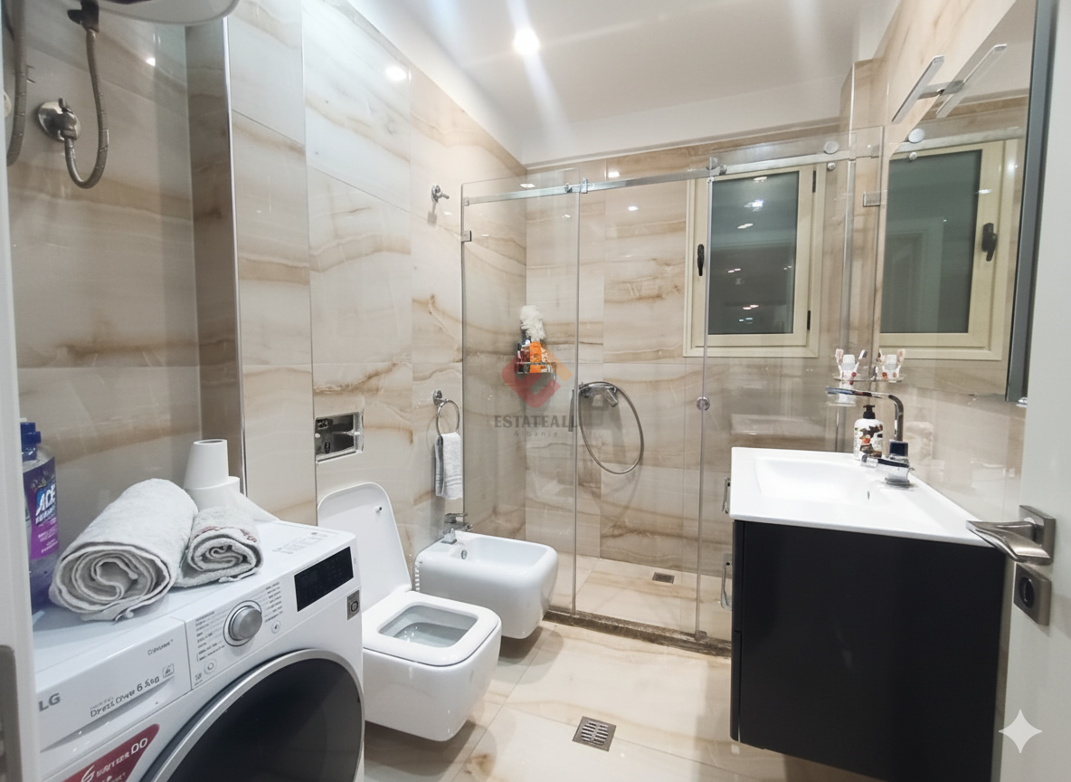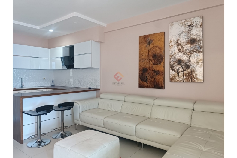 Experience the magic of Vlora in this splendid apartment, located directly on the seafront! Enjoy breathtaking sea views and the convenience of having all amenities close by. The apartment features two spacious and welcoming bedrooms, a bright living room with a new, fully equipped kitchen, and a modern bathroom.