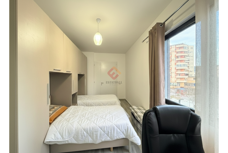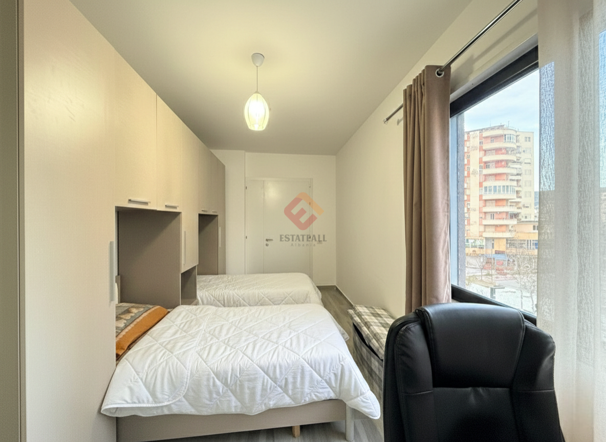 We offer for long-term rental a prestigious apartment located on the famous main avenue of Vlora, the Boulevard. The apartment features two large and bright bedrooms, three full bathrooms, and a spacious living room flooded with natural light, with modern finishes and a privileged view of the avenue.