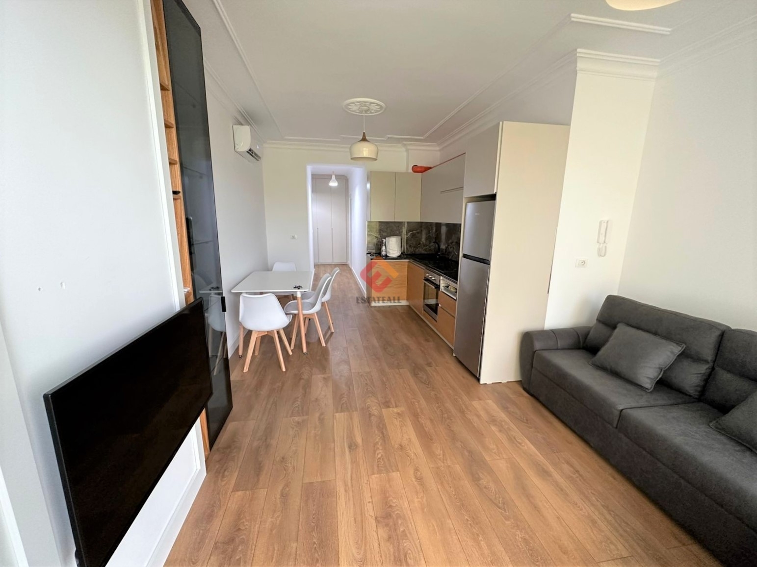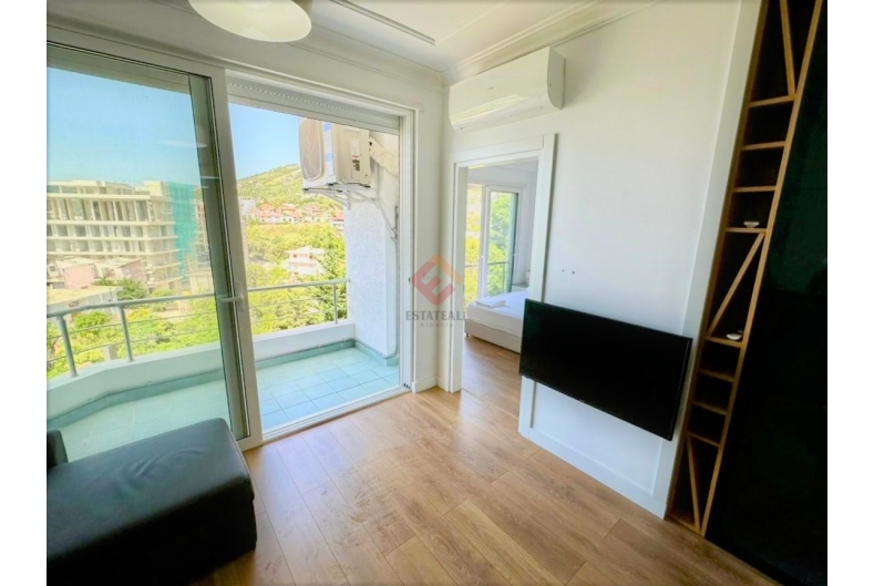 Enjoy this elegant and luxurious 1+1 apartment for long-term rental, fully furnished and meticulously designed with modern furniture, parquet floors, and state-of-the-art appliances, offering everything you need for total relaxation.